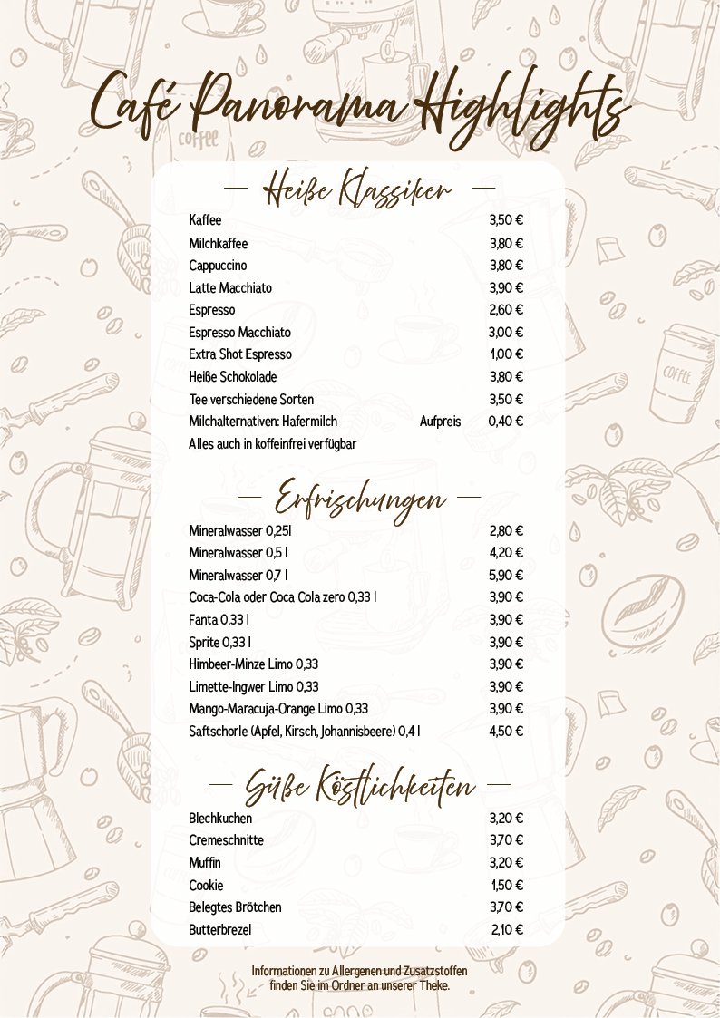 Genießen Sie Kaffeespezialitäten, köstliche Kuchen und herzhafte Snacks auf unserer Terrasse mit herrlichem Ausblick über die Region. Mit regelmäßigen Veranstaltungen und Events laden wir zum Kennenlernen und Austausch mit Gleichgesinnten ein.